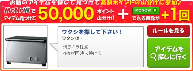 50,000ポイント山分け、画像商品を見つけてクリックで山分けに参加しよう。