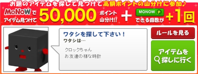 50,000ポイント山分け、画像商品を見つけてクリックで山分けに参加しよう。
