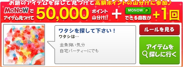 50,000ポイント山分け、画像商品を見つけてクリックで山分けに参加しよう。