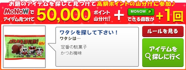 50,000ポイント山分け、画像商品を見つけてクリックで山分けに参加しよう。