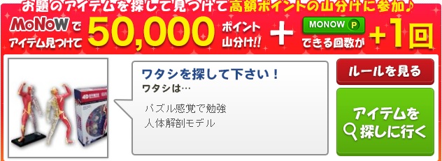 50,000ポイント山分け、画像商品を見つけてクリックで山分けに参加しよう。
