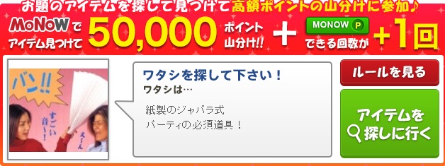 50,000ポイント山分け、画像商品を見つけてクリックで山分けに参加しよう。