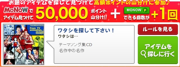 50,000ポイント山分け、画像商品を見つけてクリックで山分けに参加しよう。