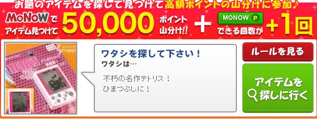 50,000ポイント山分け、画像商品を見つけてクリックで山分けに参加しよう。