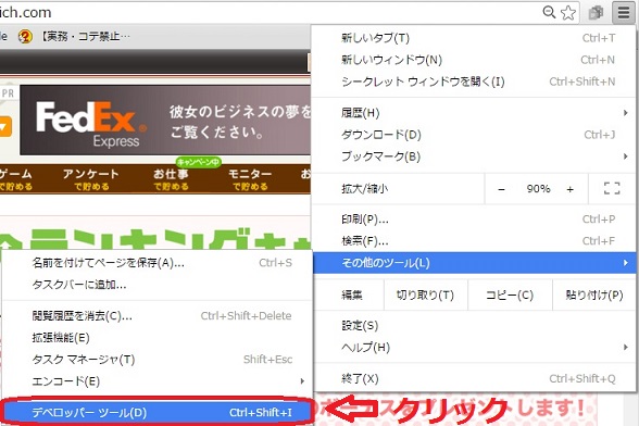 「その他のツール」⇒「デベロッパーツール」をクリックします。
