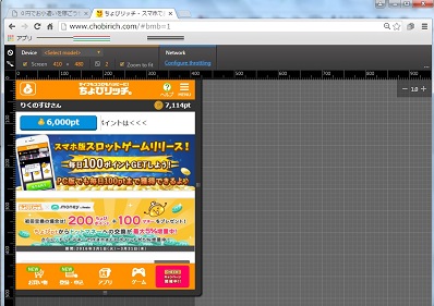 PCでスマホ版ちょびリッチを表示させるには、