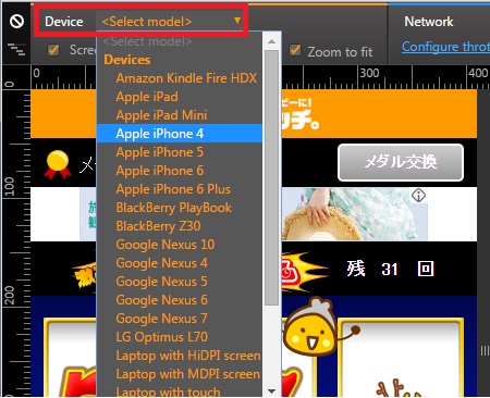 「Device」⇒「Select model」で各端末を選べますので、お好きな端末を選んで