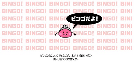さらに、ビンゴゲームでも7日目にビンゴ達成できました。