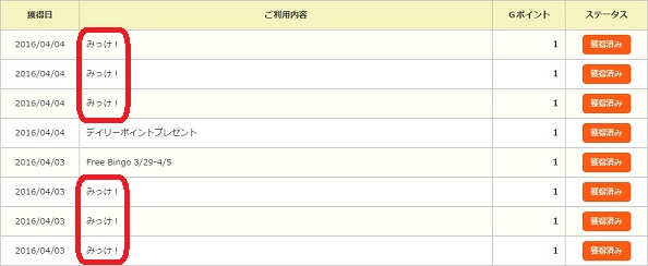 みっけ!で遊ぶ時は、Gポイントが断然おすすめです。