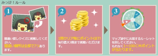 見事、7つ発見で1G(Gポイントの場合)。1日最大3G獲得出来ます。