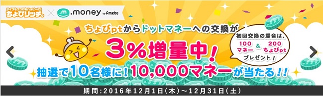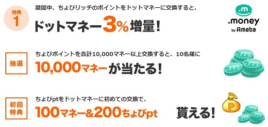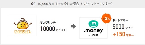 ちょびリッチ」で貯めたポイントを「ドットマネー」に交換で3%上乗せされて交換できます。