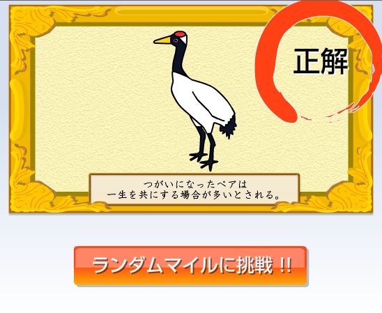 ゲームdeマイルは大人の塗り絵【タンチョウ】でした。
