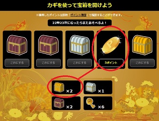 私の参加方法は、まずは金の宝箱を開けようと頑張ります(カギが少ない時は無視すること