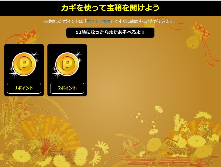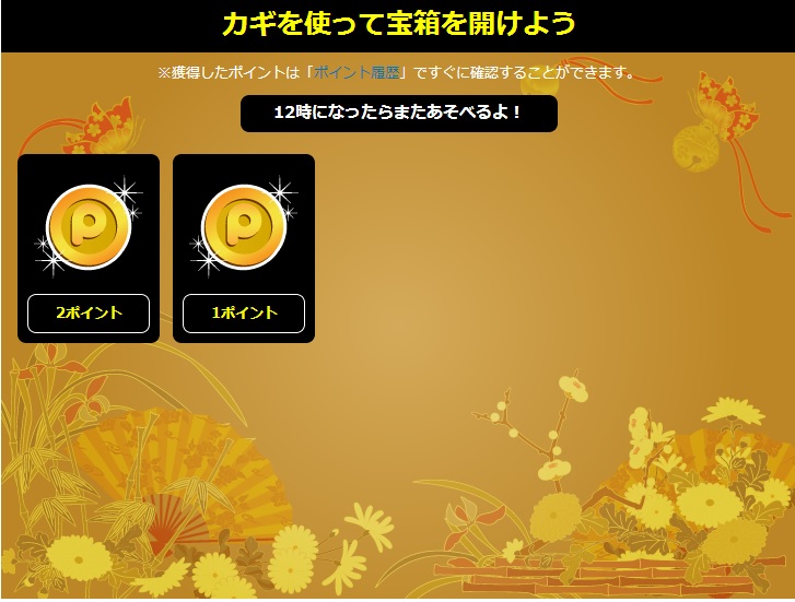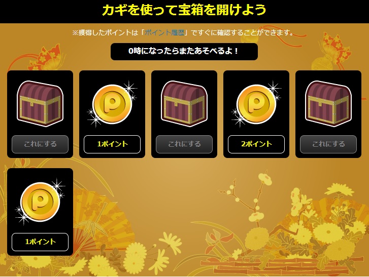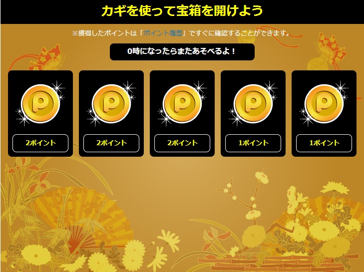 また、シルバー宝箱からは50pt(2.5円)が1回出てくれています。