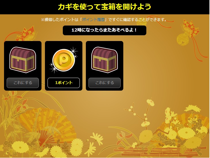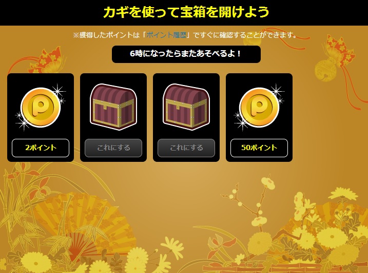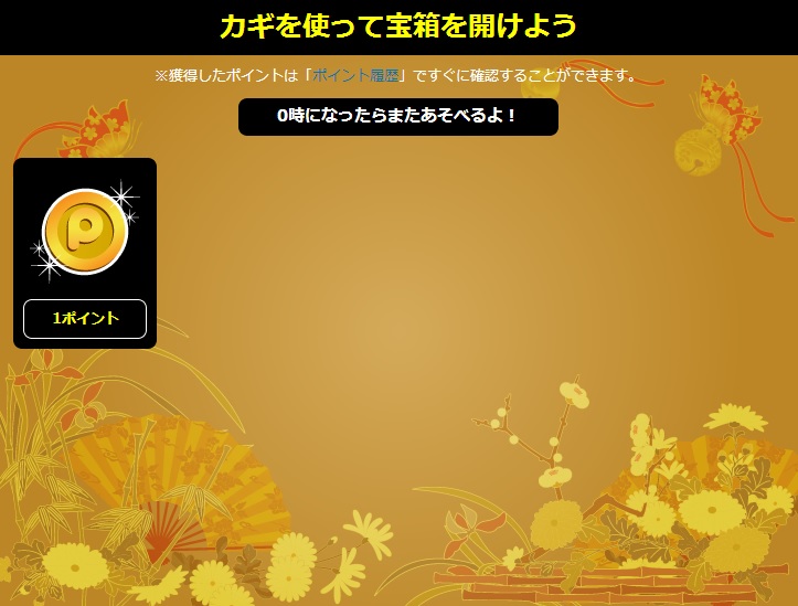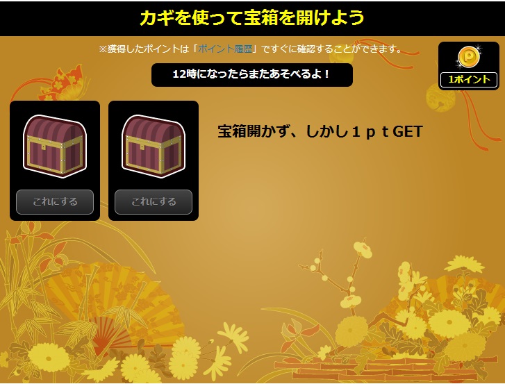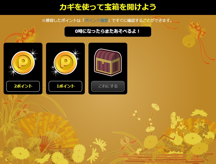 初めてのゴールド宝箱出現に高ポイントを期待したが開けることができず・・・。