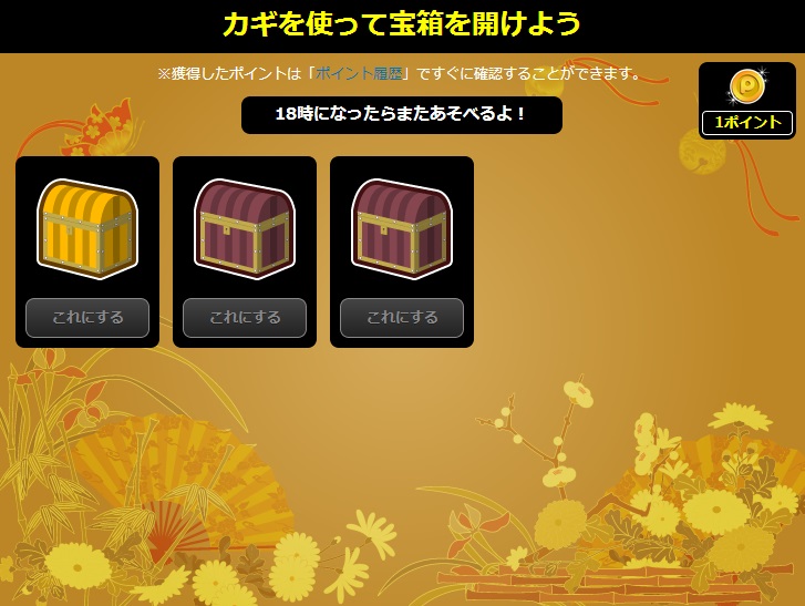 参加してみての感想なんですが、宝箱を沢山手に入れたときにはカギが手に入らなくて