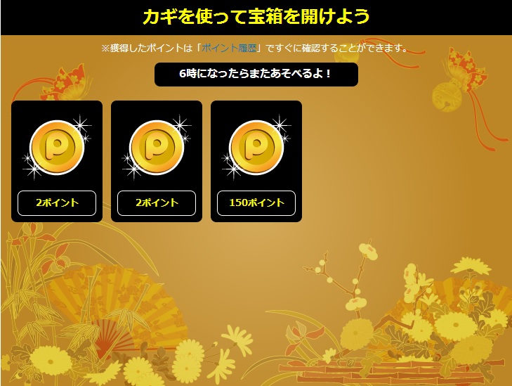 しつこくチャレンジして9個目のカギで開く事に成功。150pt出現。