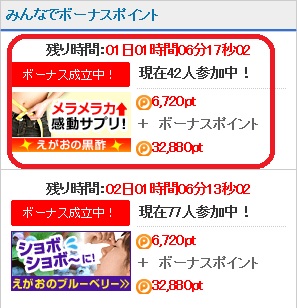『ポイントタウン』トップページの右側にある、みんなでボーナスコーナー