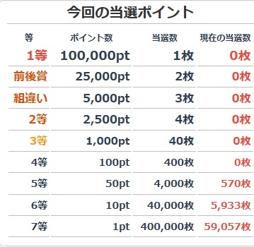 まだ、1等~4等まで1枚も当選者がいませんね。チャンスです!!
