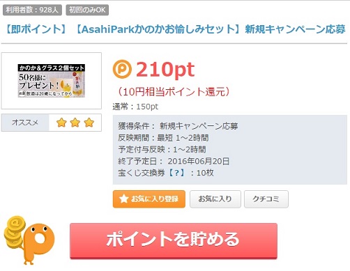 初回の応募で210pt(10.5円)もらえます。しかもすぐに。