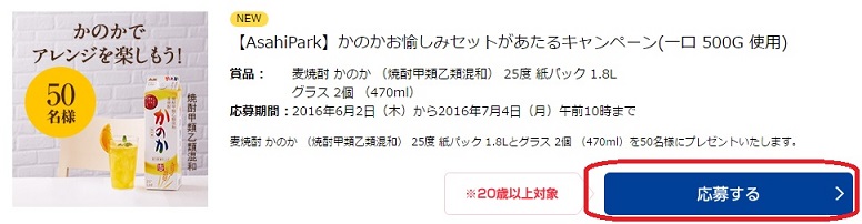 ①:【AsahiParkかのかお愉しみセット】新規キャンペーン応募