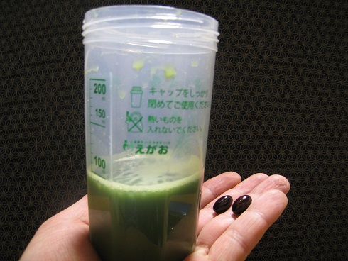 黒酢も2粒、青汁で飲みます。かなり贅沢な感じがしました・・・。