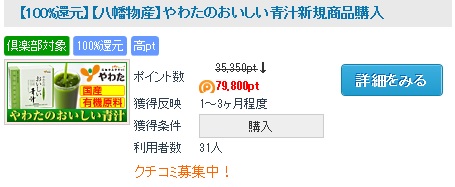 「やわたのおいしい青汁」が100%還元実質無料で試せます。