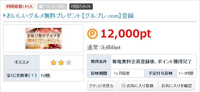 会員登録で12,000pt(600円)は破格な獲得数だと思いますよ。