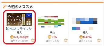 ログインしたら、トップページ中ほどの、今週のオススメにあるゲルマニウムトライアル