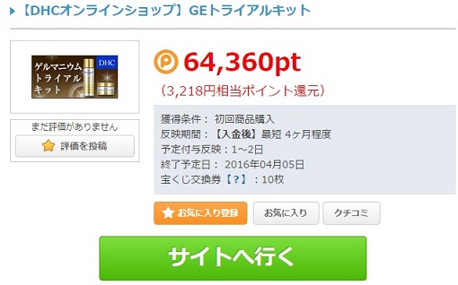 2月になってから、ポイントタウンではDHC商品の100%還元(実質無料)が盛んに