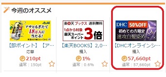 2月になってから、ポイントタウンではDHC商品の100%還元(実質無料)が盛んに