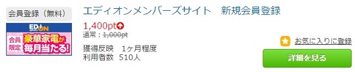 今回は「エディオンメンバーズサイト 新規会員登録 」でお小遣いを稼げます。