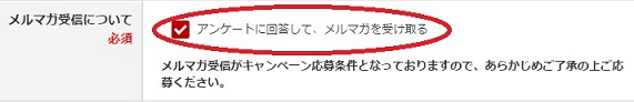 注意 メルマガ受信がキャンペーン応募条件ですので、メルマガを受け取るのチェックは外さないでください。
