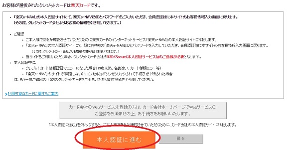 私は楽天カードの登録でしたので、楽天にログインするだけの簡単認証でしたが、