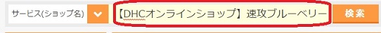 では、早速『ポイントタウン』トップページの検索窓から「【DHCオンラインショップ】速攻ブルーベリー 実質無料で購入」と検索します。