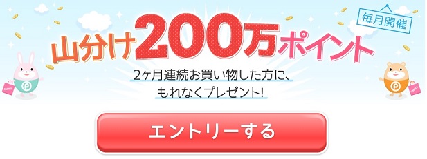 2ヶ月連続でお買い物すると、200万ポイント山分けに参加できる。
