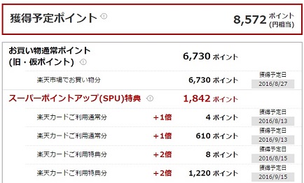 そして、本命、楽天市場からはお買い物マラソン+楽天カードポイントや何やら