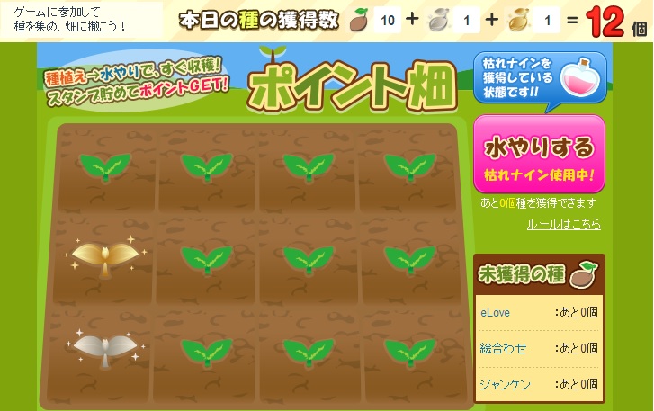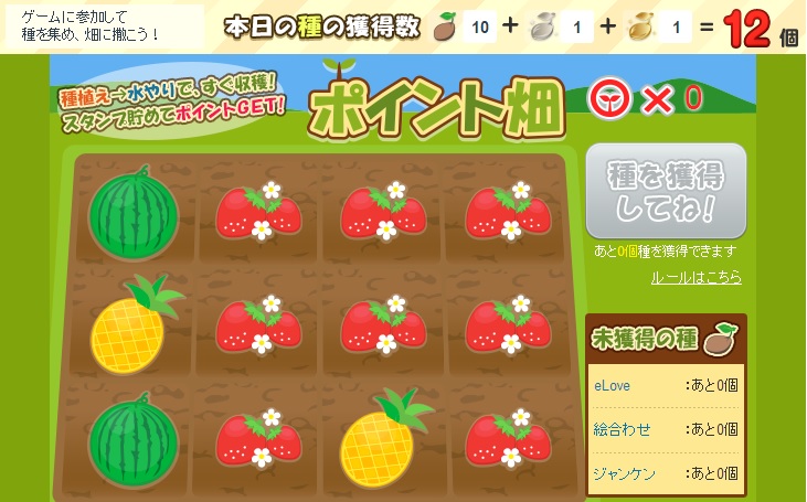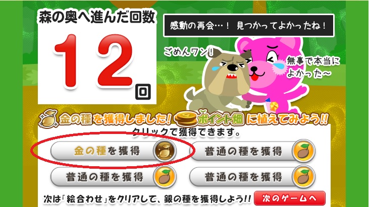 「金の種」が初めて出現しました。(12回以上成功で金の種がGET出来ます)