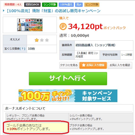 シルバー会員以上になると、ショッピングでの上乗せが期待出来ます。