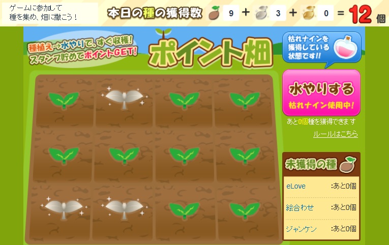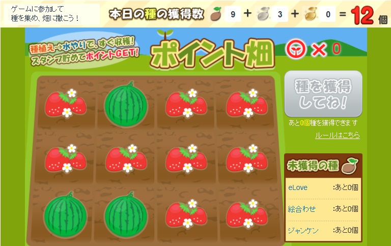 畑に種を播いて収穫するゲーム、ポイントタウンでの名前は「ポイント農場」