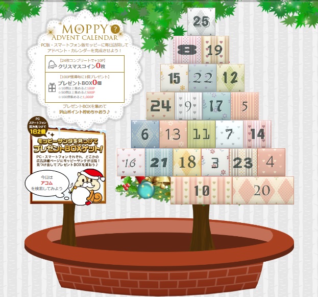 『モッピー』クリスマスイベントスタート、その名も「アドベント・カレンダー」