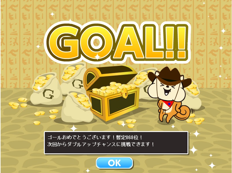暫定順位は868位。この後に待ち受ける最大の試練。ダブルアップチャンスチャレンジします。