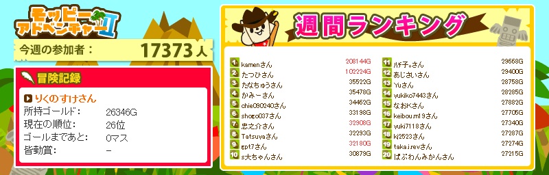 今週は、モッピーアドベンチャーⅡ(スゴロク)で上位入賞を目論んでいます。