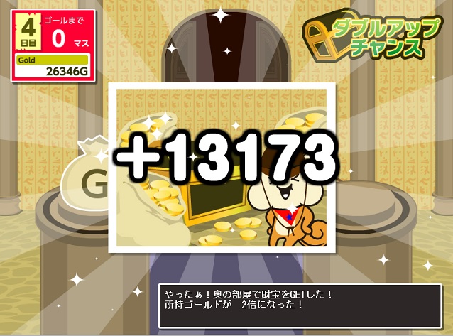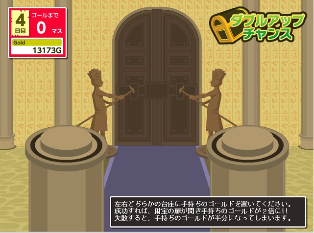 今回のゴール時の獲得Gは13173G。ダブルアップチャンスは全部で8回挑戦できます。