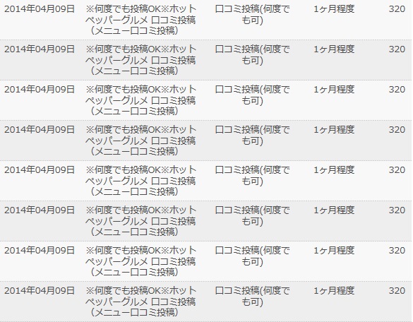 4月9日に『ライフマイル』経由で「ホットペッパー口コミ」を8件行ったのですが