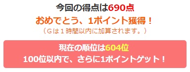 500点以上獲得すると1G(1円)貰え、ランキング100位以内なら1GボーナスGET。