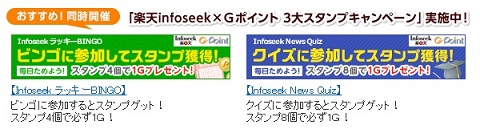 Infoseek News Quiz とラッキーBINGO はGポイント経由で利用しよう。
