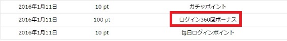 ボーナスとは別に毎日ログインで10ptもらえるので、1年ログインだけで400円以上稼げたことになりますね。