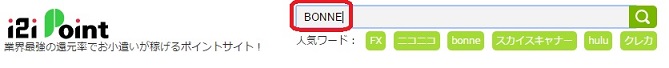 i2iポイント」にログイン後、トップページの検索窓より「BONNE」と