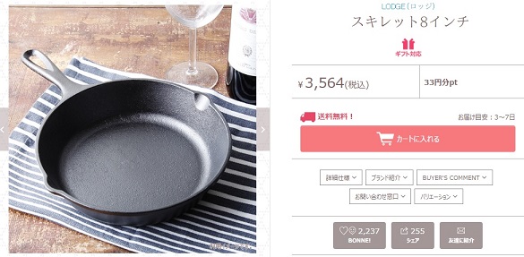 BONNEポイント分の割引もあるので、最終的には3,564円の8インチスキレットを